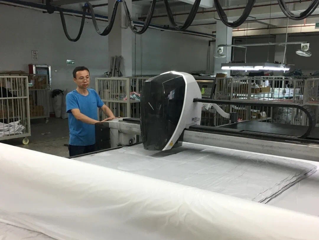 目前六安英瑞厚重款的生產計劃占比已達到50%,并且布料品種裁剪難度不斷升級中。為更好的配合生產高峰,裁剪車間的員工克服著高溫與技術上的雙重壓力,努力尋求方法和可行的路徑。羊羔絨產品生產經過反復試驗,不同顏色設定固定層高,并將計劃和排料進行調整,確保裁剪效率最大化,實現了穩定而高效的完美交付。